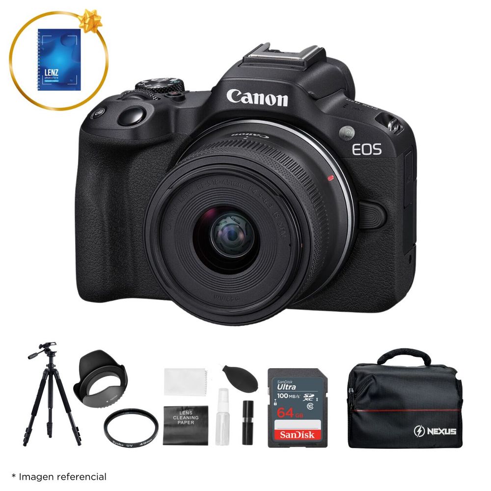 Cámara Mirrorless EOS R50 Lente RF S 18-45mm + Kit Ultimate (N) - Cámara Mirrorless EOS R50 Lente RF S 18-45mm y Kit Ultimate N
