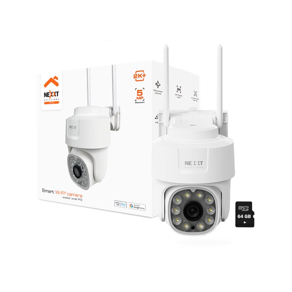 Cámara PTZ Wifi Nexxt NHC-OP10 5MP Zoom 6X Audio 2 vías Reflector RJ45 + SD 64GB