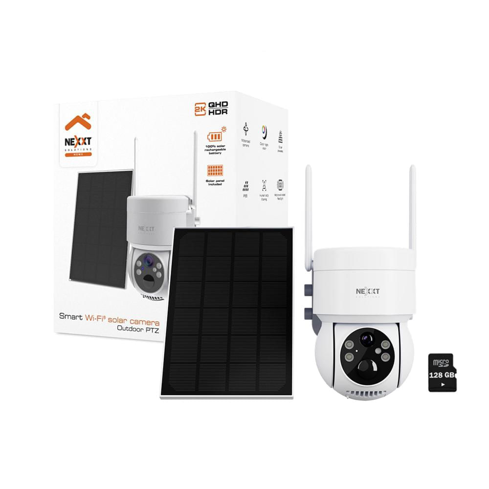 Cámara Wifi PTZ Next NHC-OP20S 3MP 2K Panel Solar Sirena Reflector IP65 SD128GB