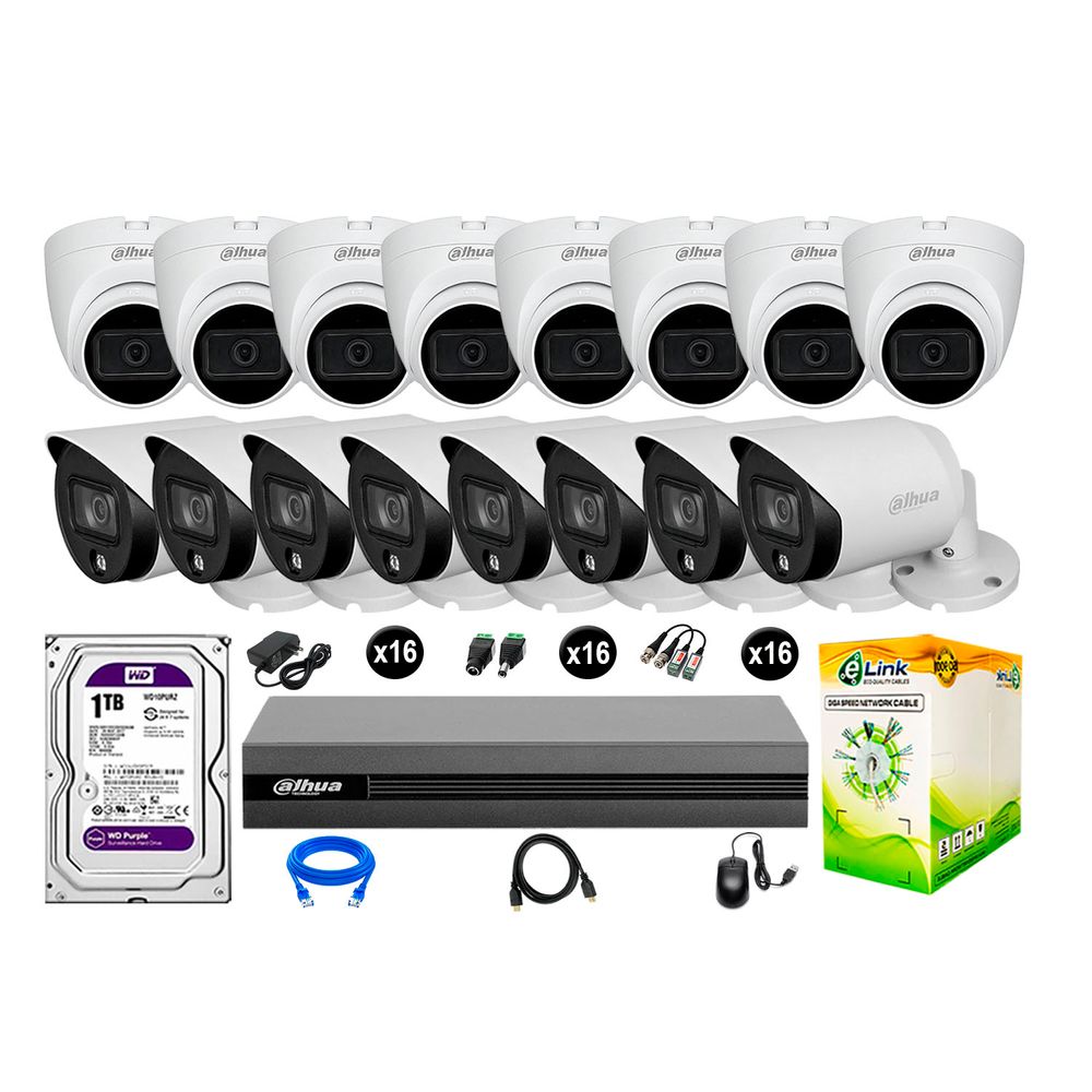 Cámaras Seguridad Dahua Kit 16 Full Hd Disco 1tb Vision Nocturna Full Color
