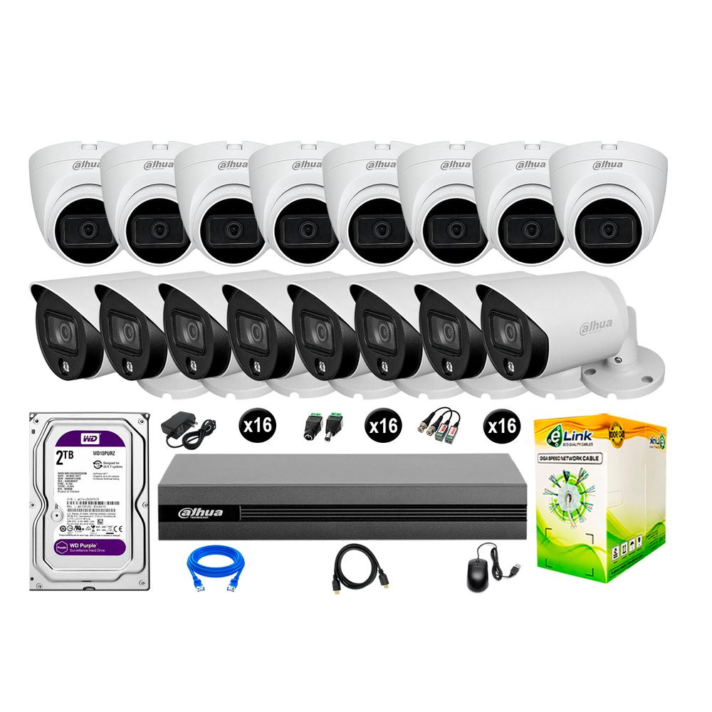 Cámaras Seguridad Dahua Kit 16 Full Hd Disco 2tb Vision Nocturna Full Color