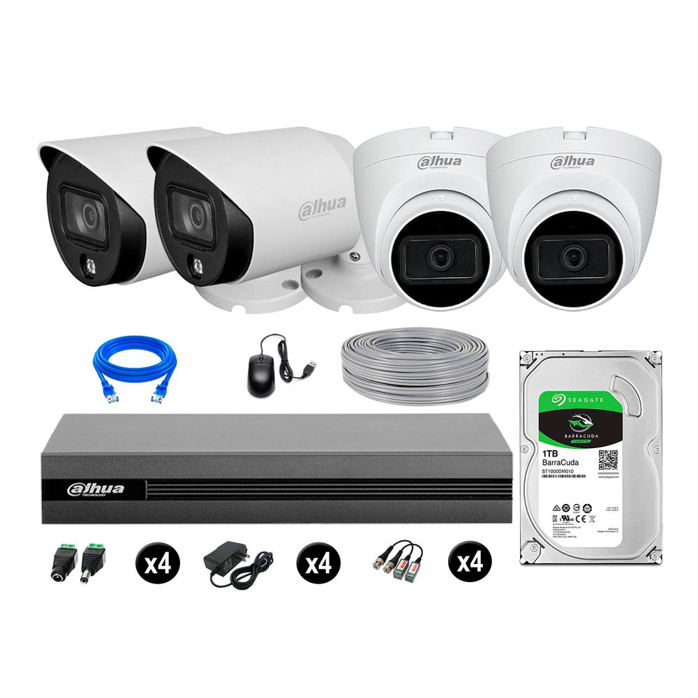 Cámaras Seguridad Dahua Kit 4 Full Hd Disco 1tb Vision Nocturna Full Color