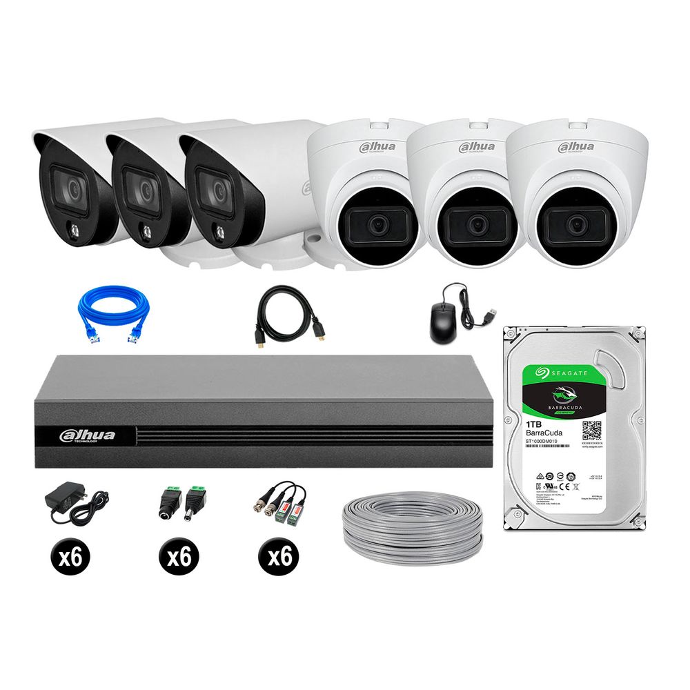 Cámaras Seguridad Dahua Kit 6 Full Hd Disco 1tb Vision Nocturna Full Color