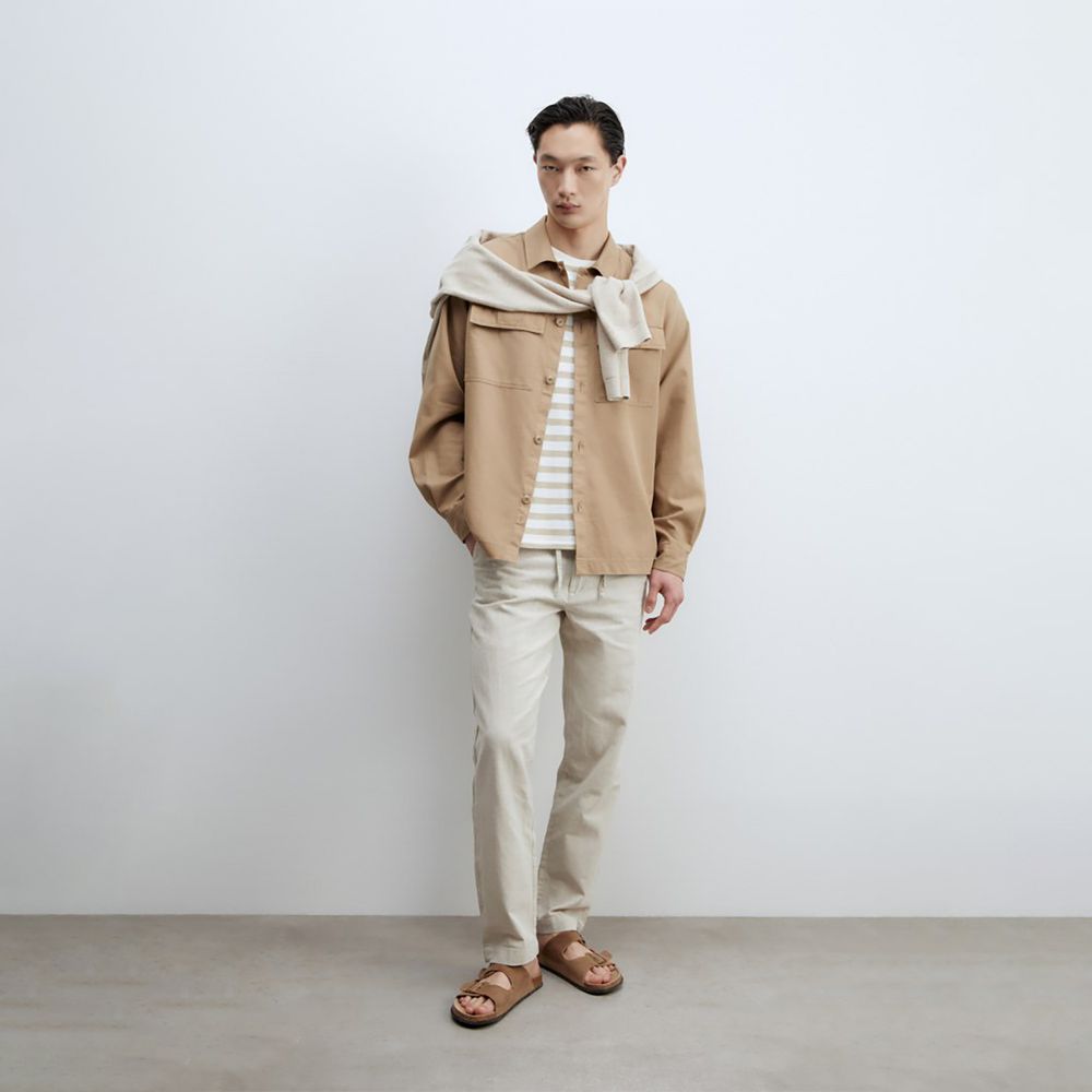 Camisa Hombre Sfera Algodón Lino Marrón