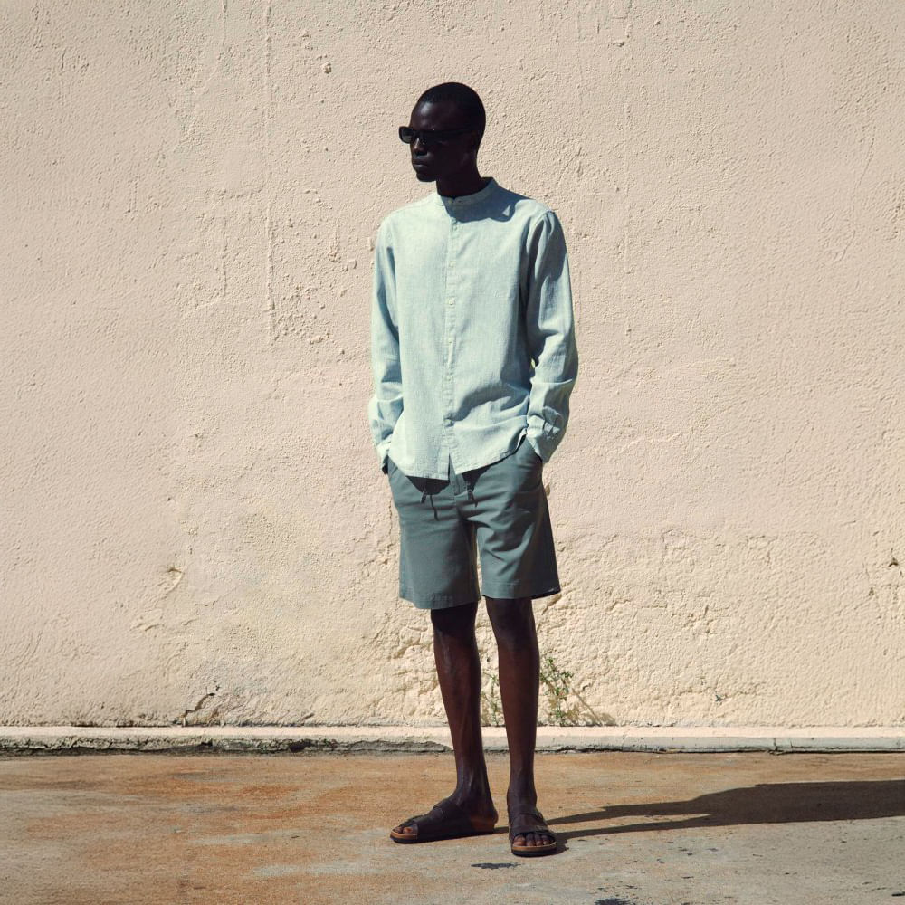 Camisa Hombre Sfera Mao Lino Rayas Verde