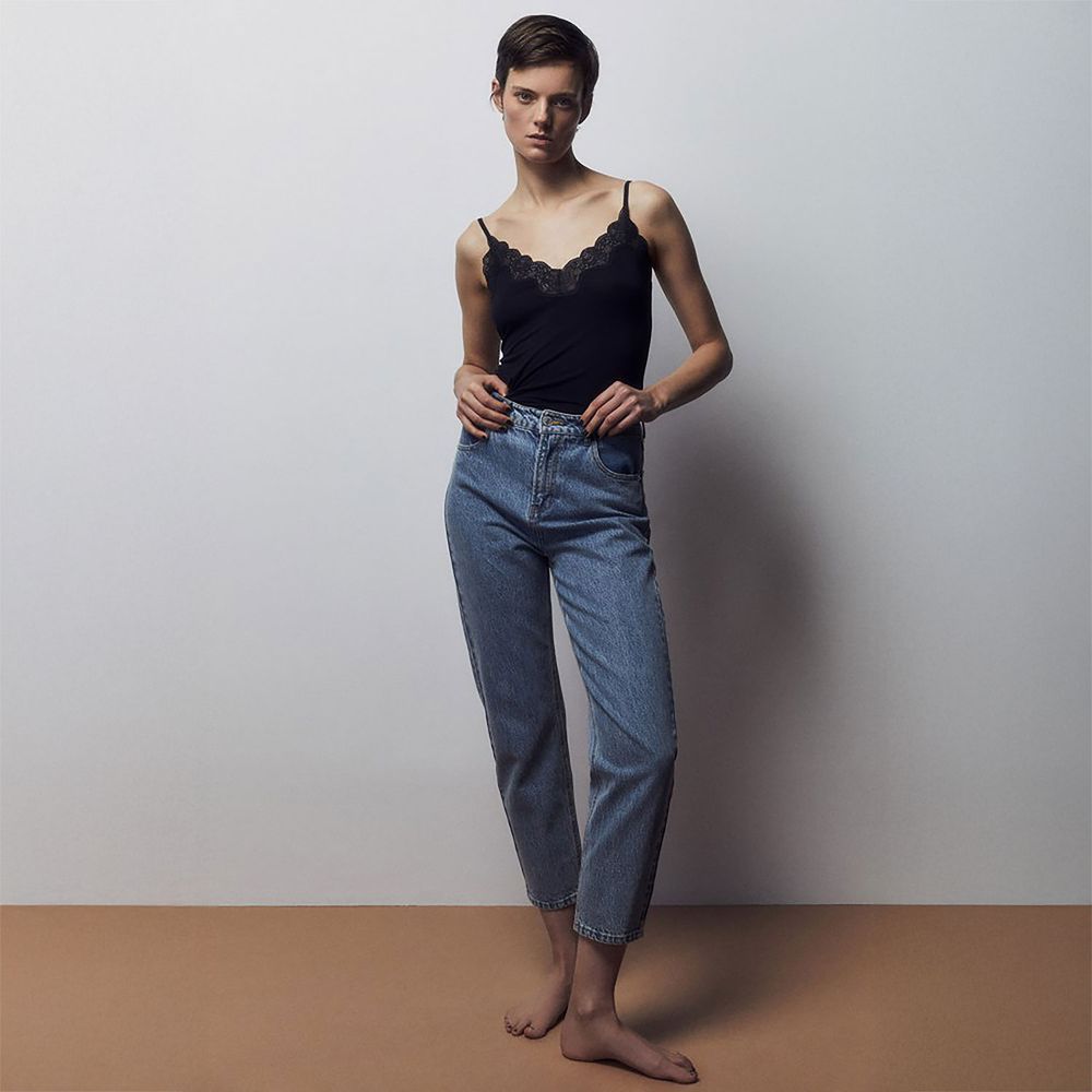 Camiseta Sfera Mujer Lisa Puntilla Negro