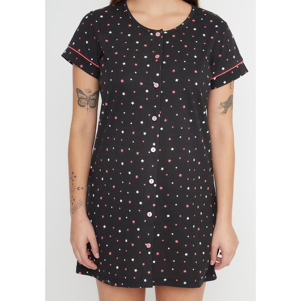 Camisola Pijama Mujer 71.1076 Kayser Manga Corta Algodón Negro