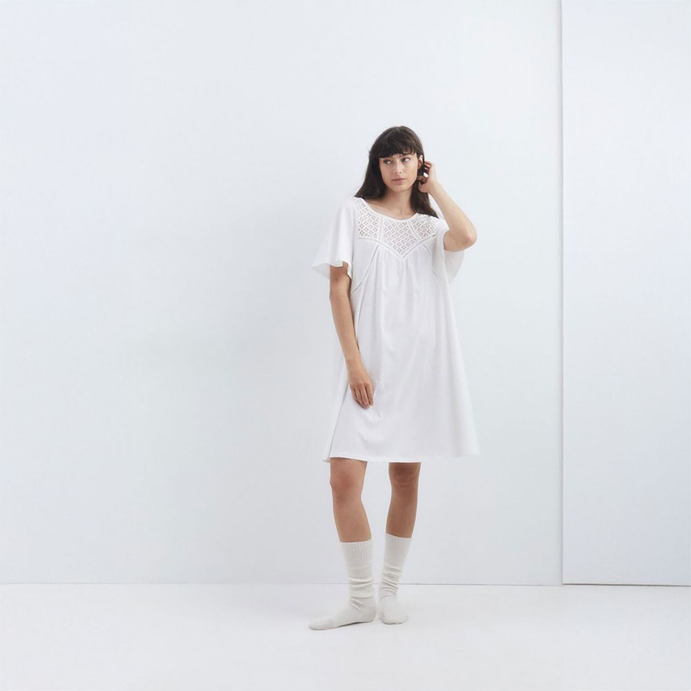 Camisón Pijama Sfera Mujer Liso Crochet Blanco Roto