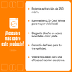 | Características | Panel de control con pulsadores. Visera regulable que mejora el área de absorción. Sistemas de seguridad: Salva motor térmico (protege a campana en caso de sobrecalentamiento) y conexión a tierra. Iluminación LED Cool White (bajo consumo, mayor iluminación). |