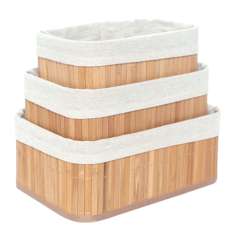 Canastilla Cesto Organizador de Bambú y Lino 3 Piezas