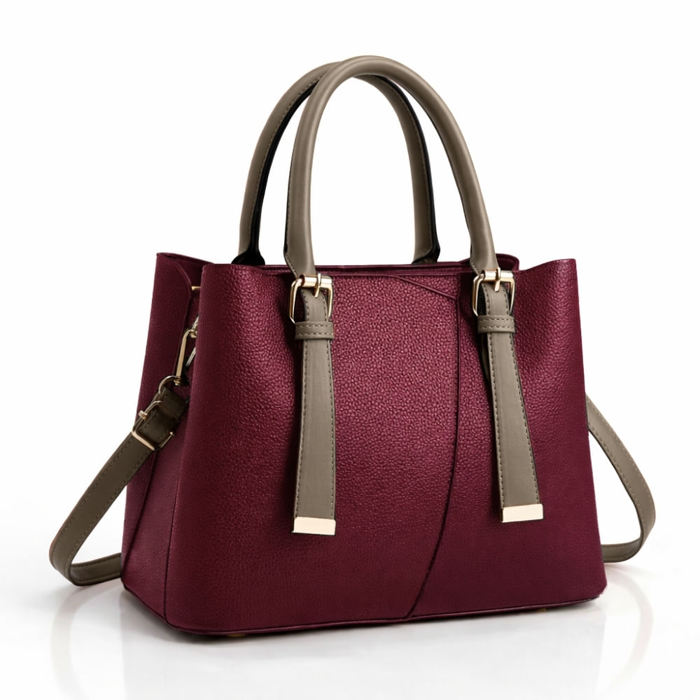 Cartera Tote Mujer con Correa y División Interna – Bordó