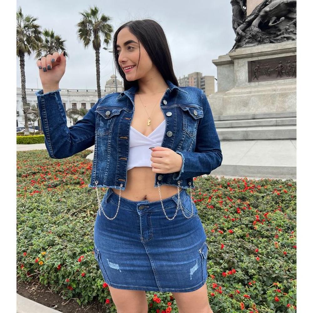 Casaca Corta Jean Stretch Mujer.