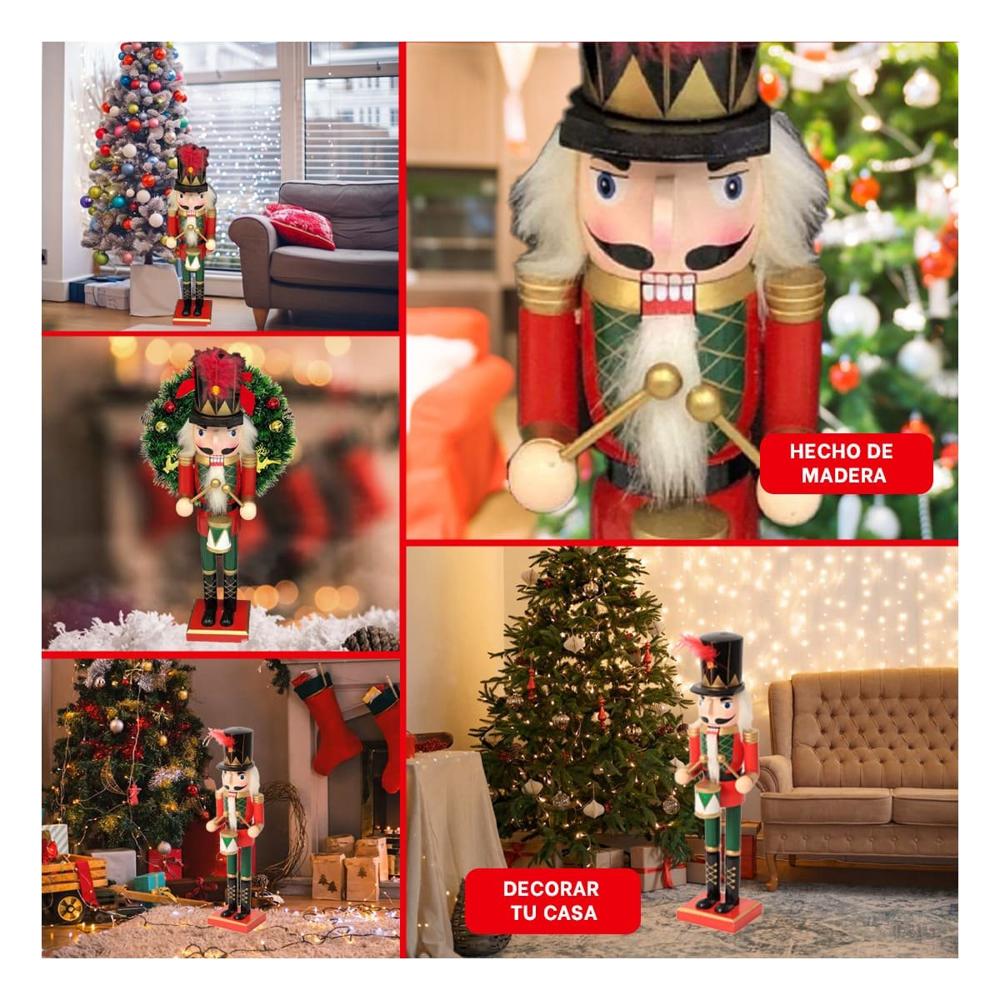 Cascanuez con Sombrero con Pluma y Tambor en Rojo y Verde