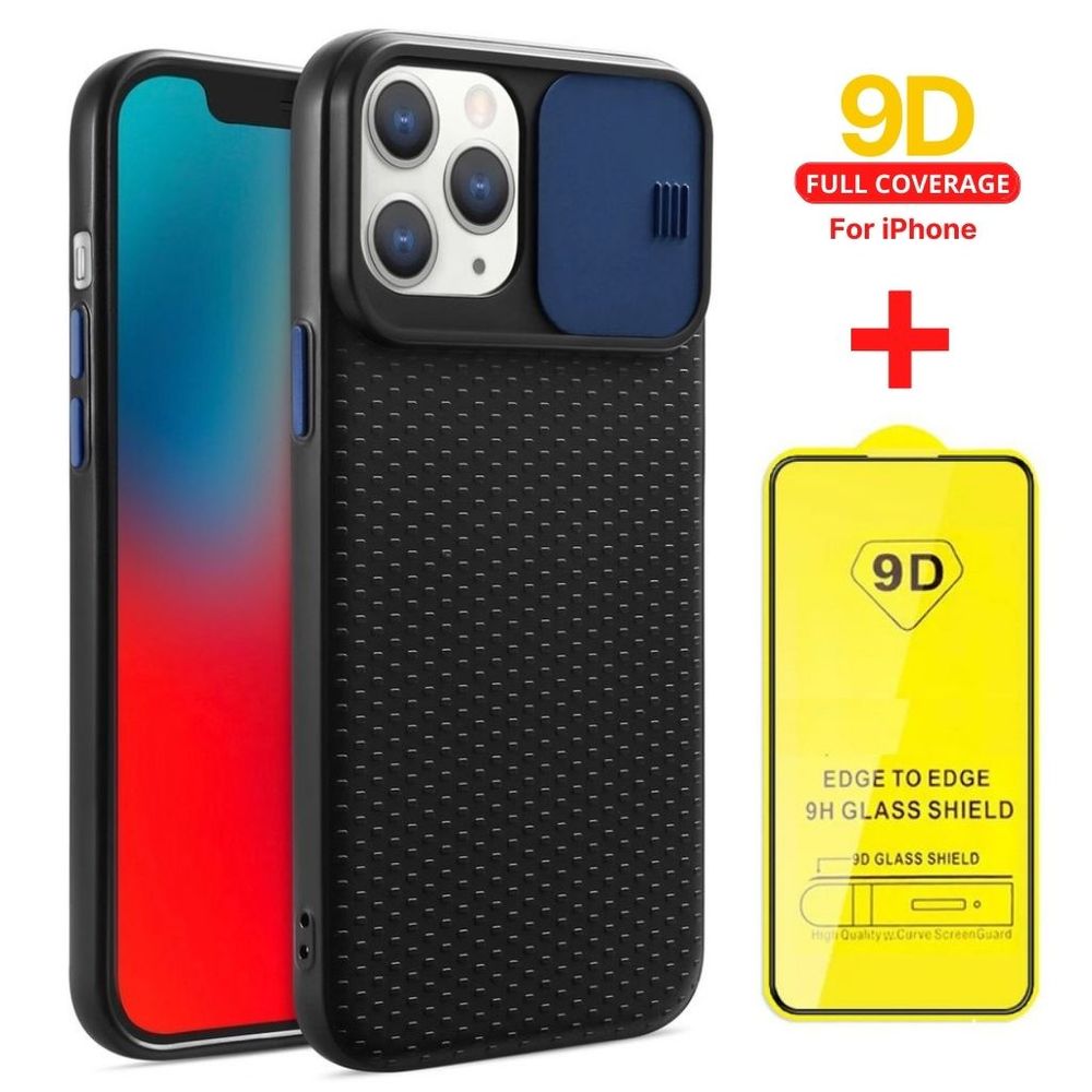 Case Funda CamShield + Mica de Vidrio 9D iPhone 12 Pro Max - Azul