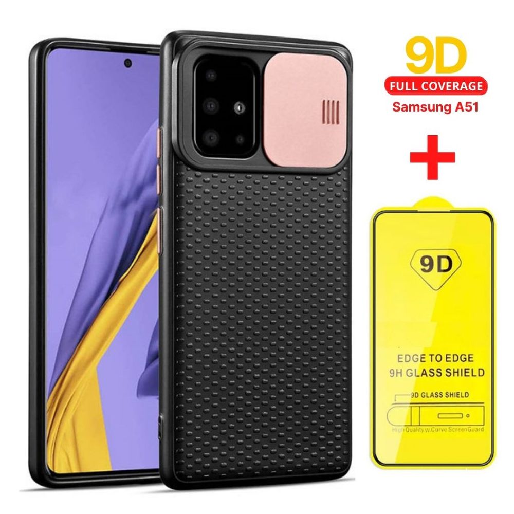 Case Funda CamShield + Mica de Vidrio 9D para Samsung A51 - Rosado