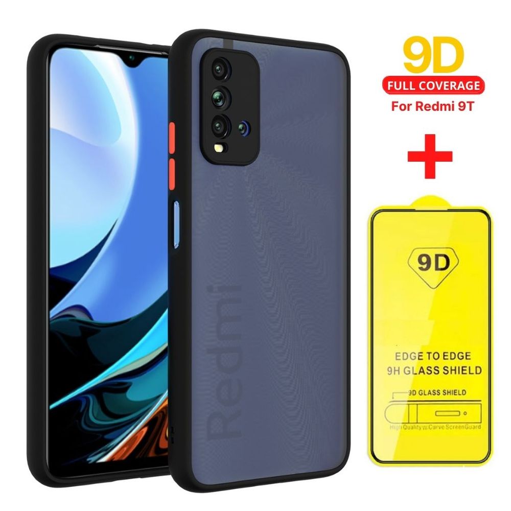Case Funda Mate Antishock + Mica 9D Xiaomi Redmi 9T - Negro
