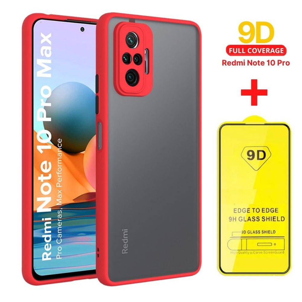 Case Mate Ahumado + Mica de Vidrio 9D Xiaomi Redmi Note 10 Pro - Rojo