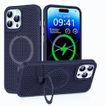 Case moket con soporte y magsafe para iphone 15 pro max azul