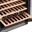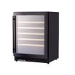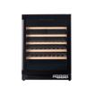 | Características | Tecnología de enfriamiento por compresor, máxima eficiencia aún en climas muy cálidos. Pantalla digital LED y panel de control touch. Zona de conservación única. Estabilización de temperatura digital en un rango de 5-20°C. Puerta reversible con doble vidrio templado. Luz interior LED Cool White, máxima visibilidad. Capacidad para 53 botellas de vino de 750 ml. Estantes de madera (5 unidades). Patas regulables en altura para una correcta nivelación. Tipo de instalación, sobre piso o empotrada. Child lock, inhabilita el panel de control para evitar el manipuleo accidental. Punto a tierra, protección contra cualquier tipo de fuga eléctrica. |