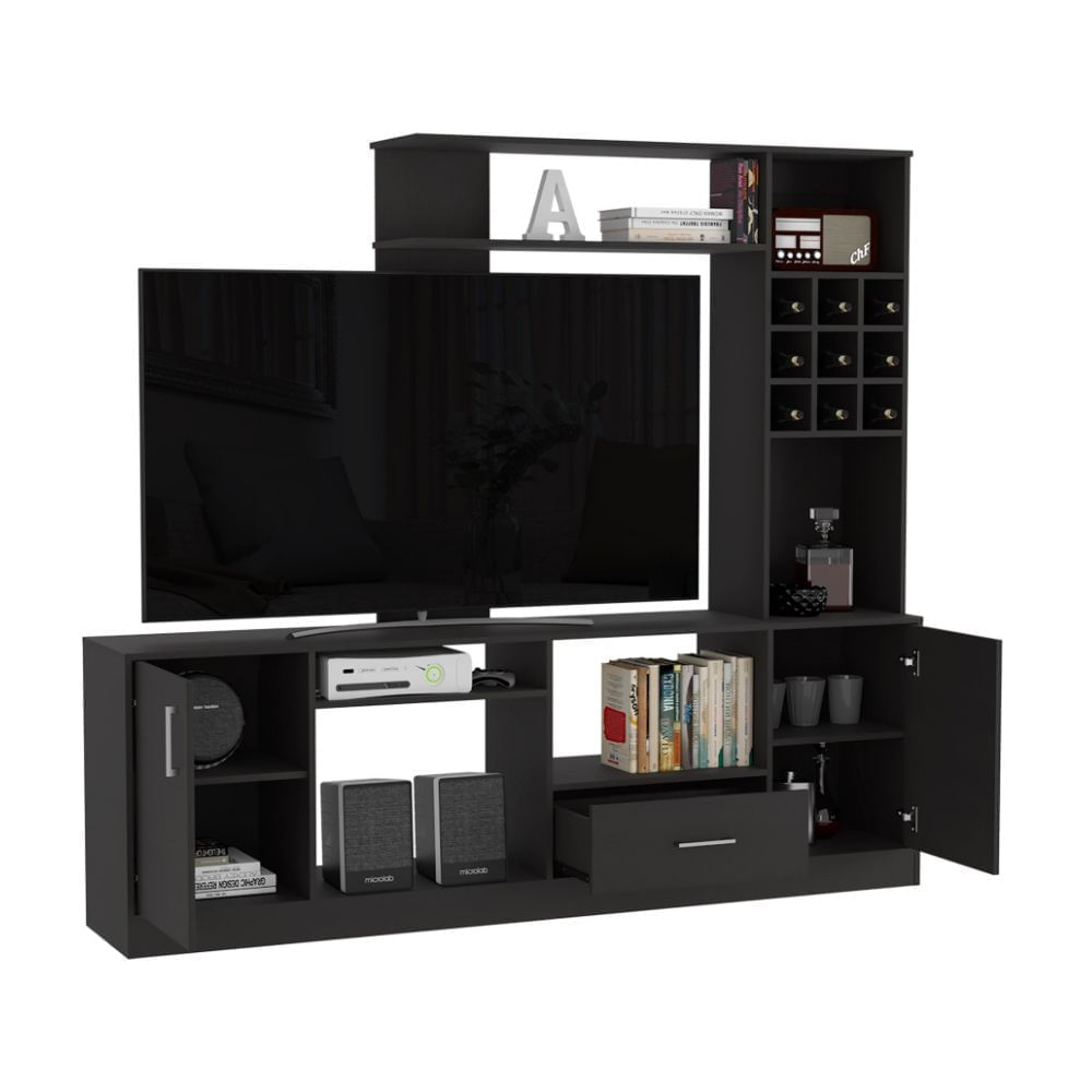 Centro de Entretenimiento 60" Beijing Melamina Negro Tuhome