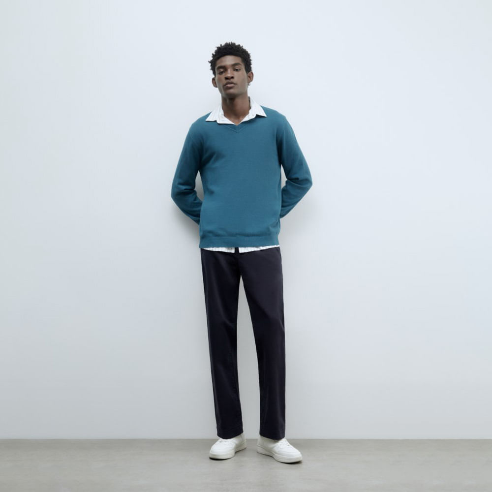 Chompa Cuello Pico Sfera Hombre Azul Petroleo