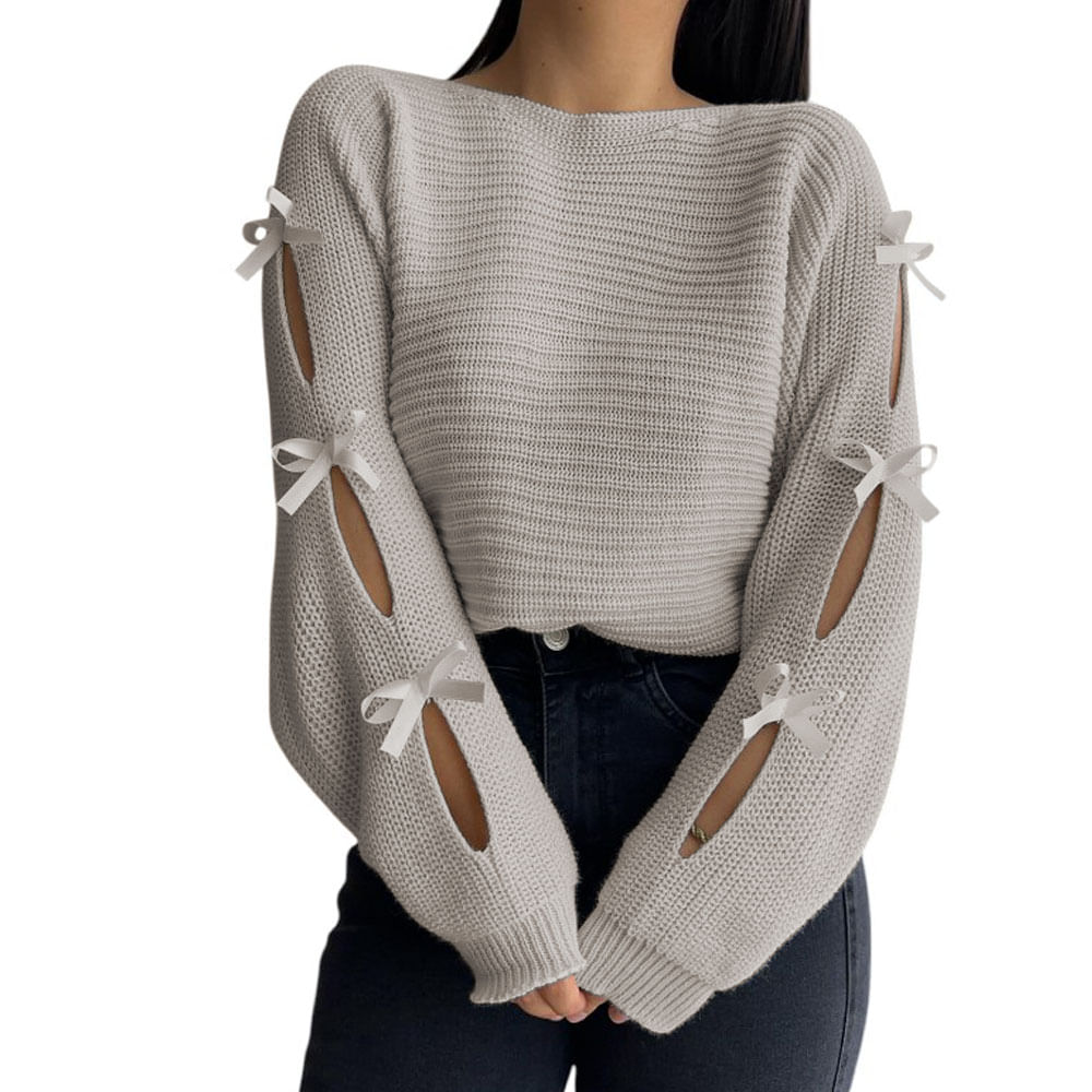 Chompa Mujer 359G-23 Hilo Tacto Con Cintas Color Hueso