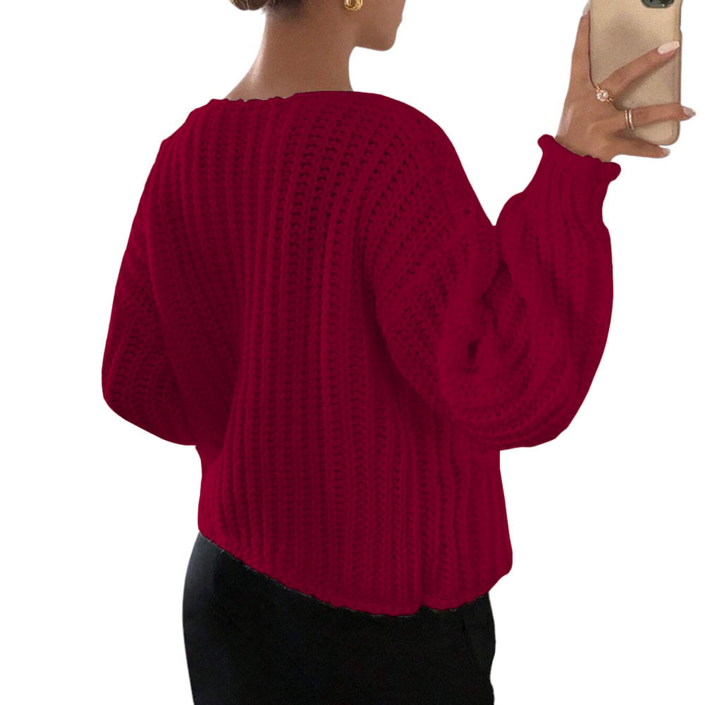 Chompa Mujer Hilo Bolsillos Botones 359G-30 Color Vino