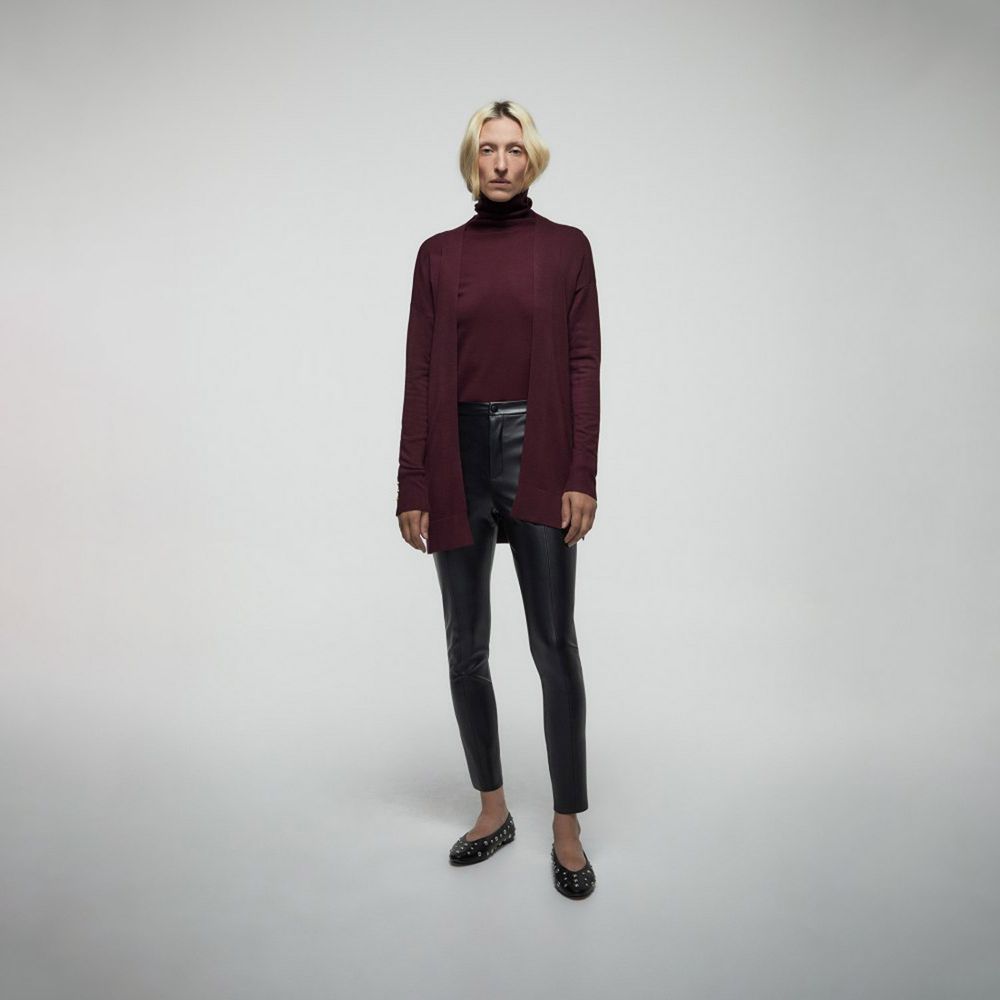 Chompa Mujer Sfera Abierta Punto Liso Burdeo