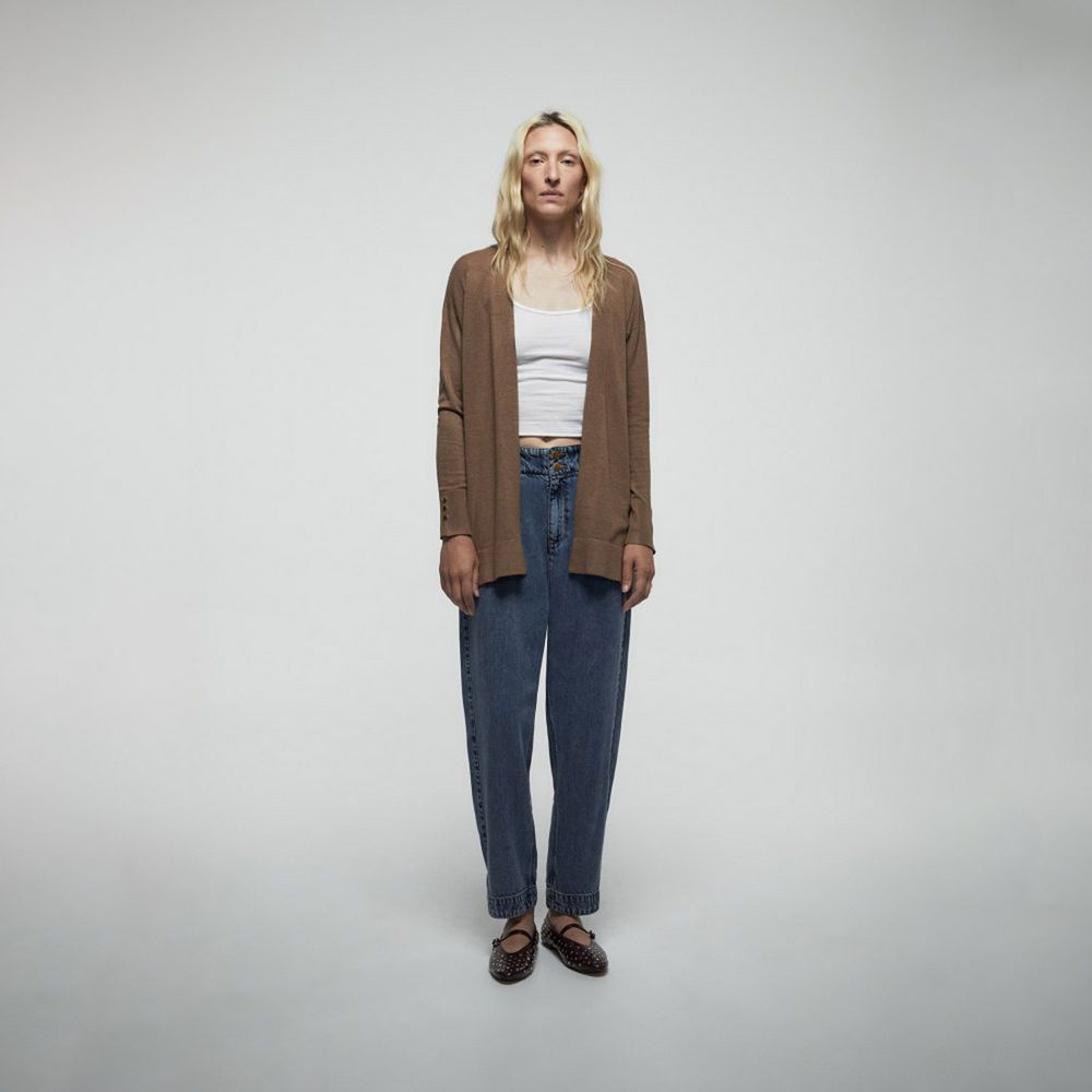 Chompa Mujer Sfera Abierta Punto Liso Marrón