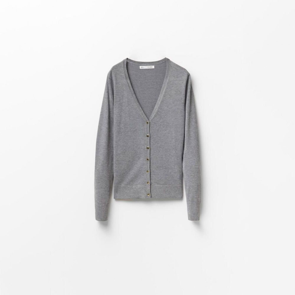 Chompa Mujer Sfera Basica Cuello Pico Gris Claro