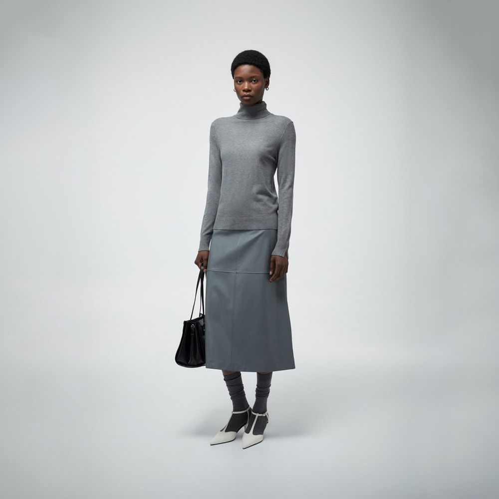Chompa Mujer Sfera Basico Cuello Vuelto Gris Claro