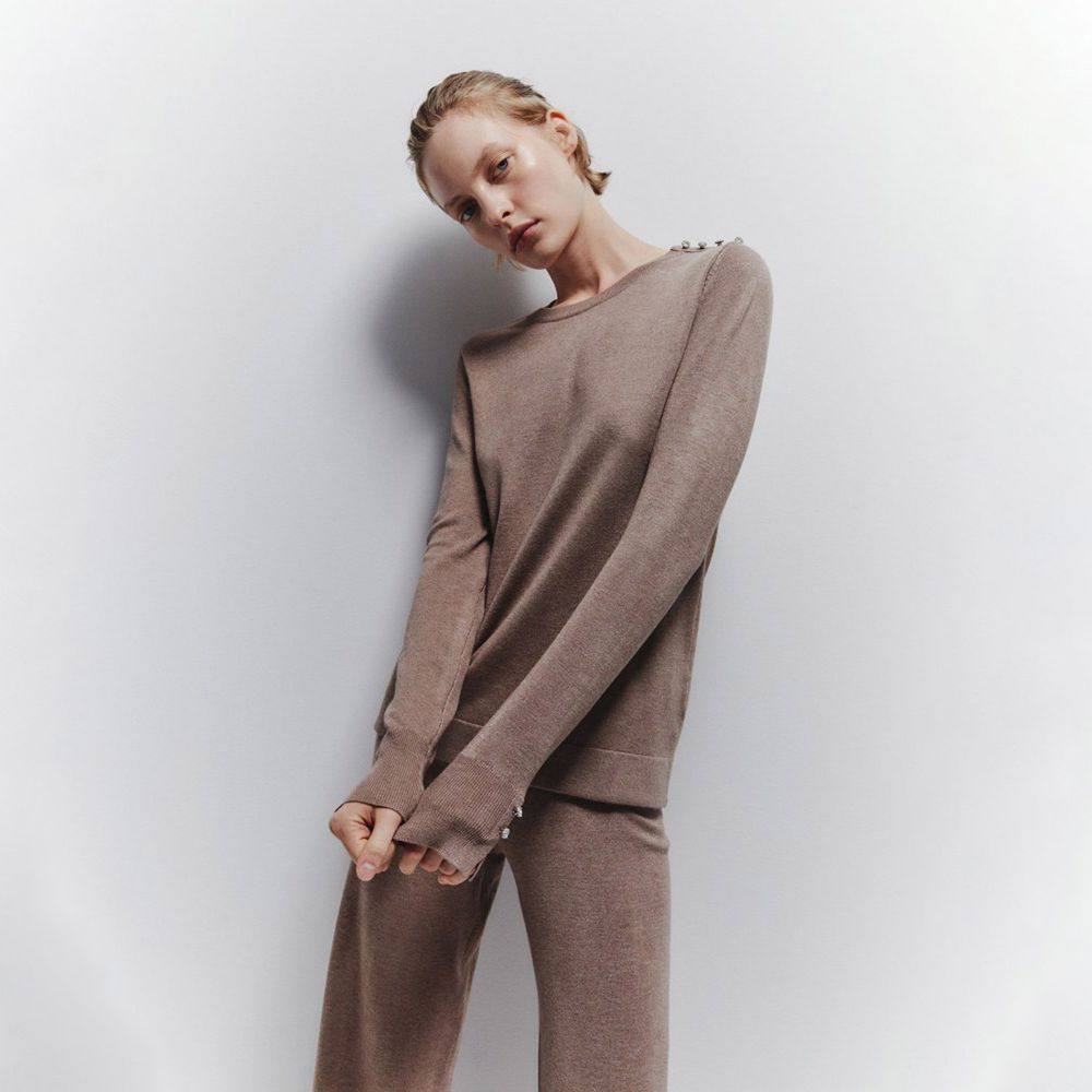 Chompa Mujer Sfera Boton Joya One Gris Metal