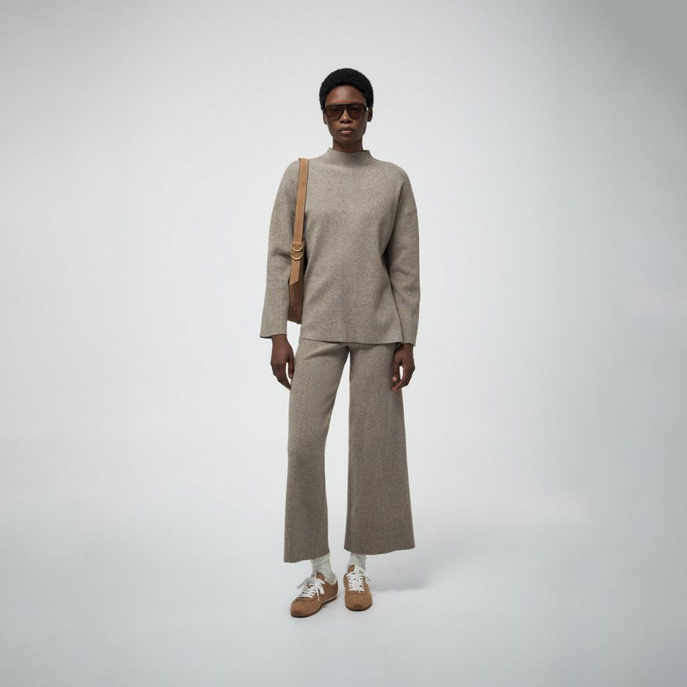 Chompa Mujer Sfera Cuello Perkins Conjunto Gris Metal