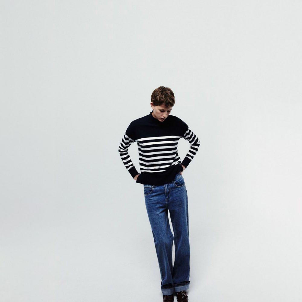 Chompa Mujer Sfera Rayas Cuello Perkins Azul Marino