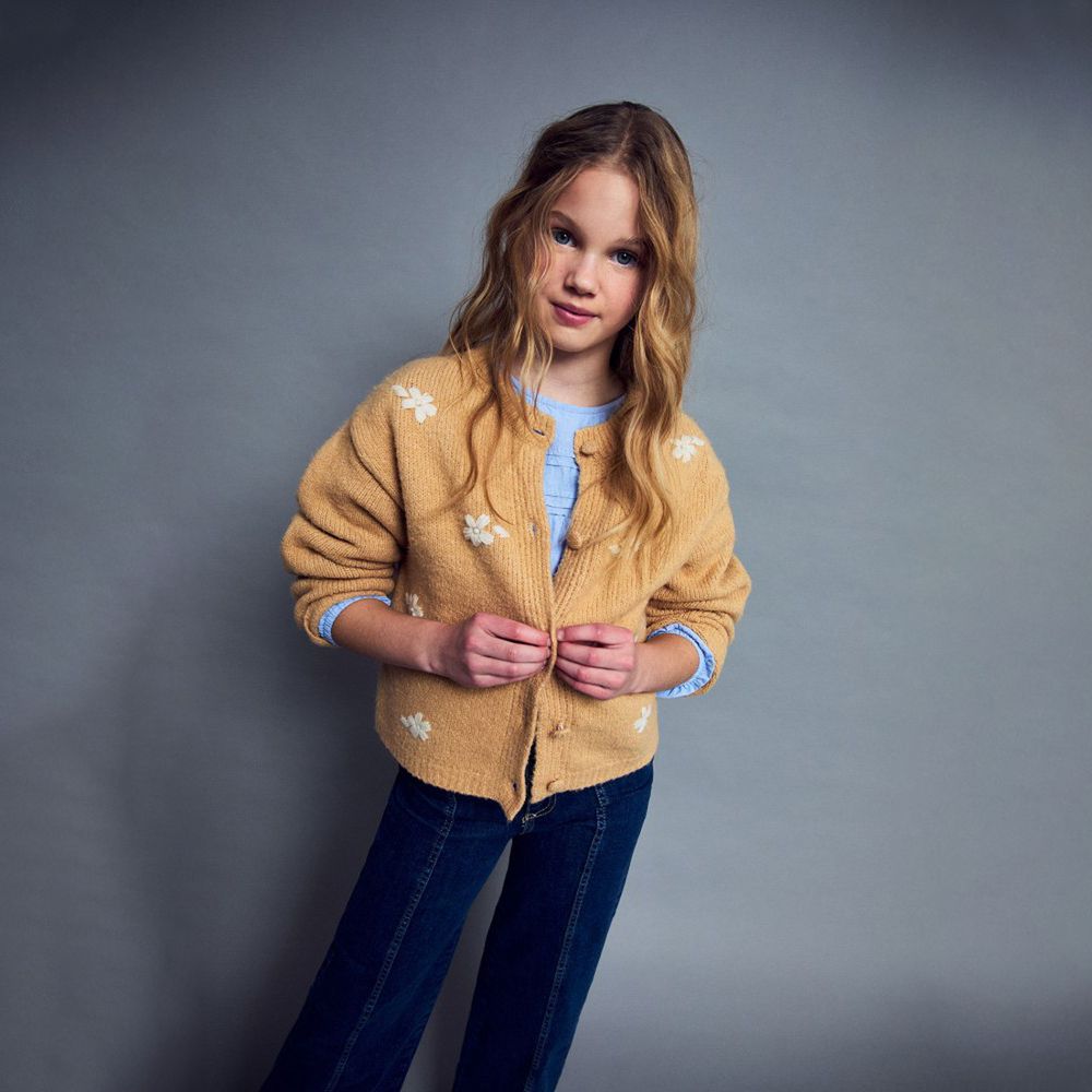 Chompa Niña Sfera Bordados Contraste Beige