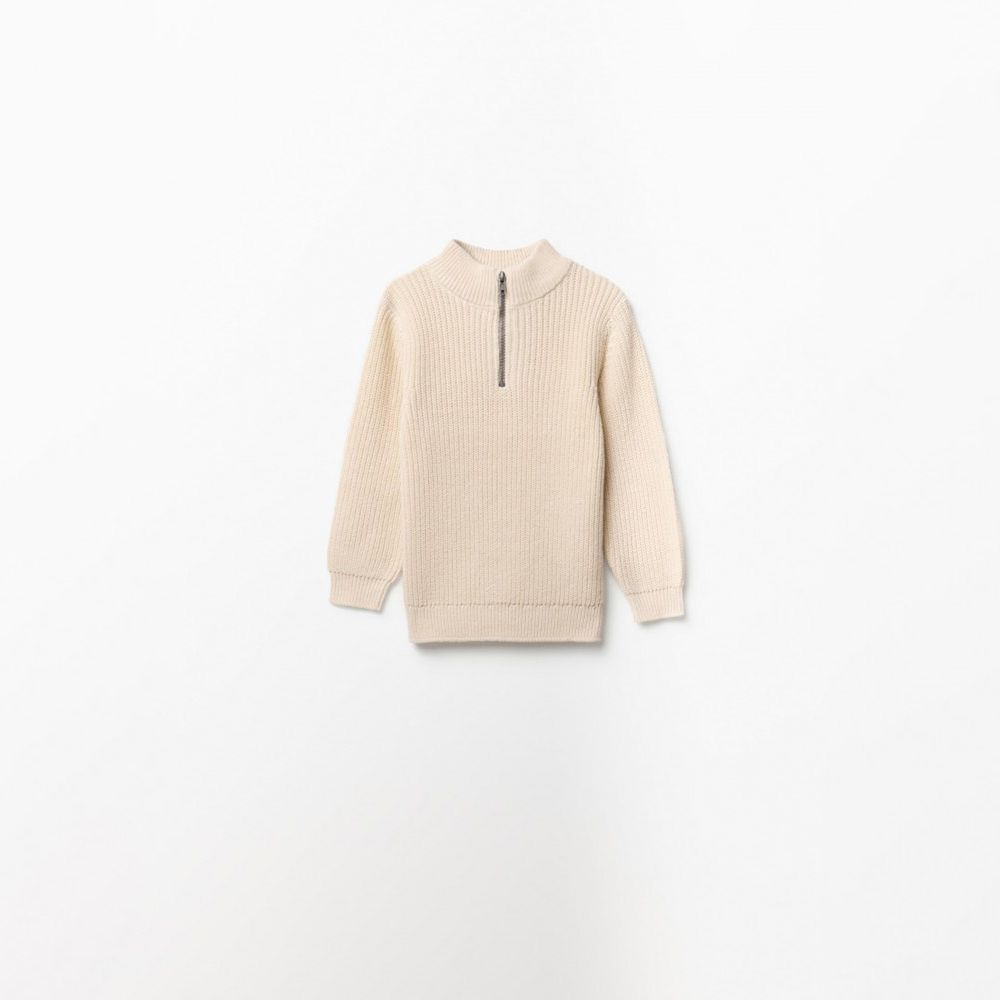 Chompa Niño Sfera Rib Cremallera Cuello Crudo