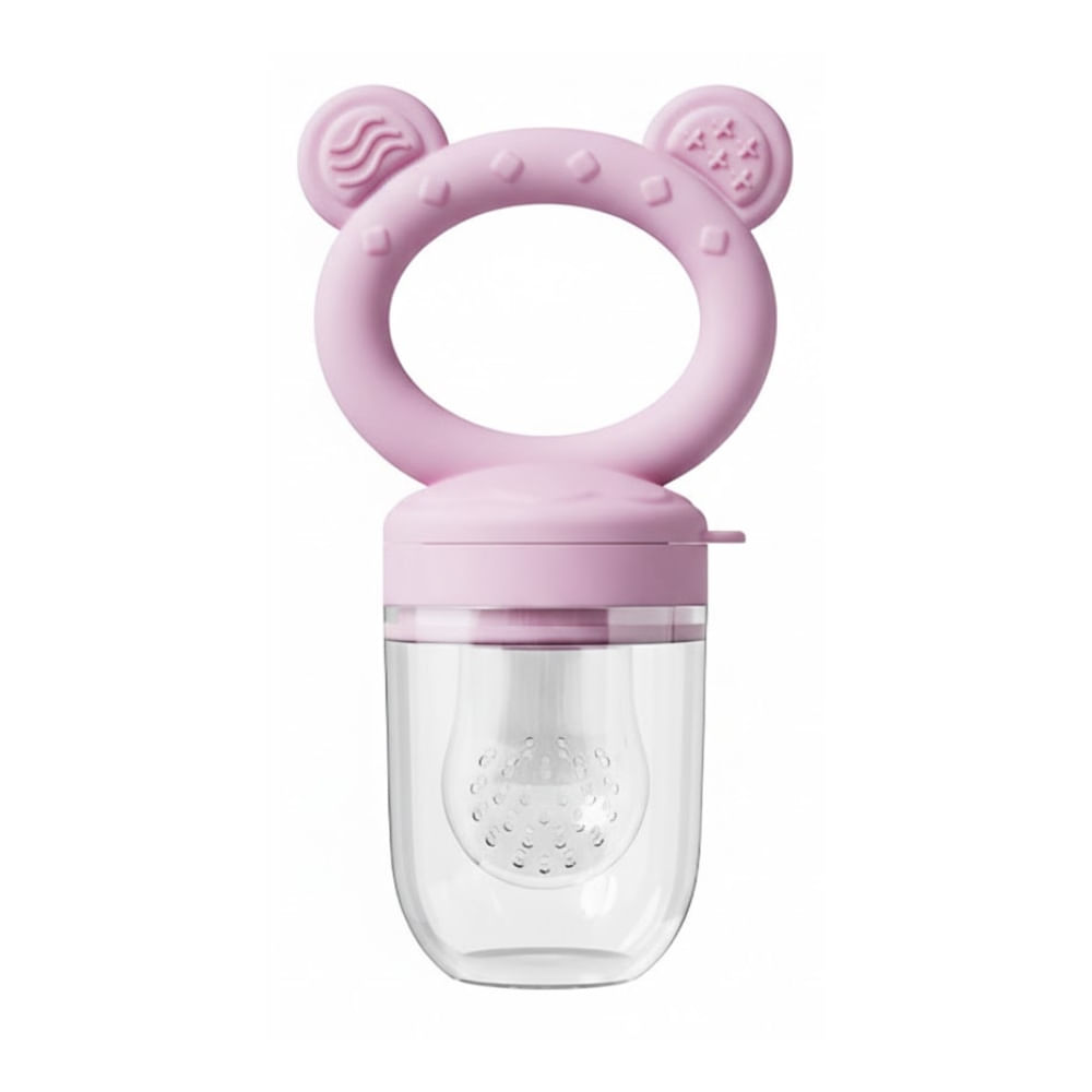 Chupón Osito Alimentador Mordedor de Silicona con Estuche más Cadena más Repuesto Rosado