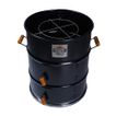 | Características | Cuerpo, tapa y fondo fabricado en acero laminado en frío (LAF). Recubrimiento interno y externo de grado alimentario. Cuenta con rejilla protectora. Carbonera. 8 ganchos de acero inoxidable y con mangos de madera para un fácil manipuleo libre de riesgos. Capacidad de cocción: 7 pollos o 12 kg de carne. |