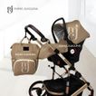 Coche Moises 3 en 1 de Lujo L' MILANE con Portabebé y Bolso Pañalero Beige