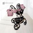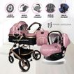 Coche Moises 3 en 1 de Lujo L' MILANE con Portabebé y Bolso Pañalero Rosa