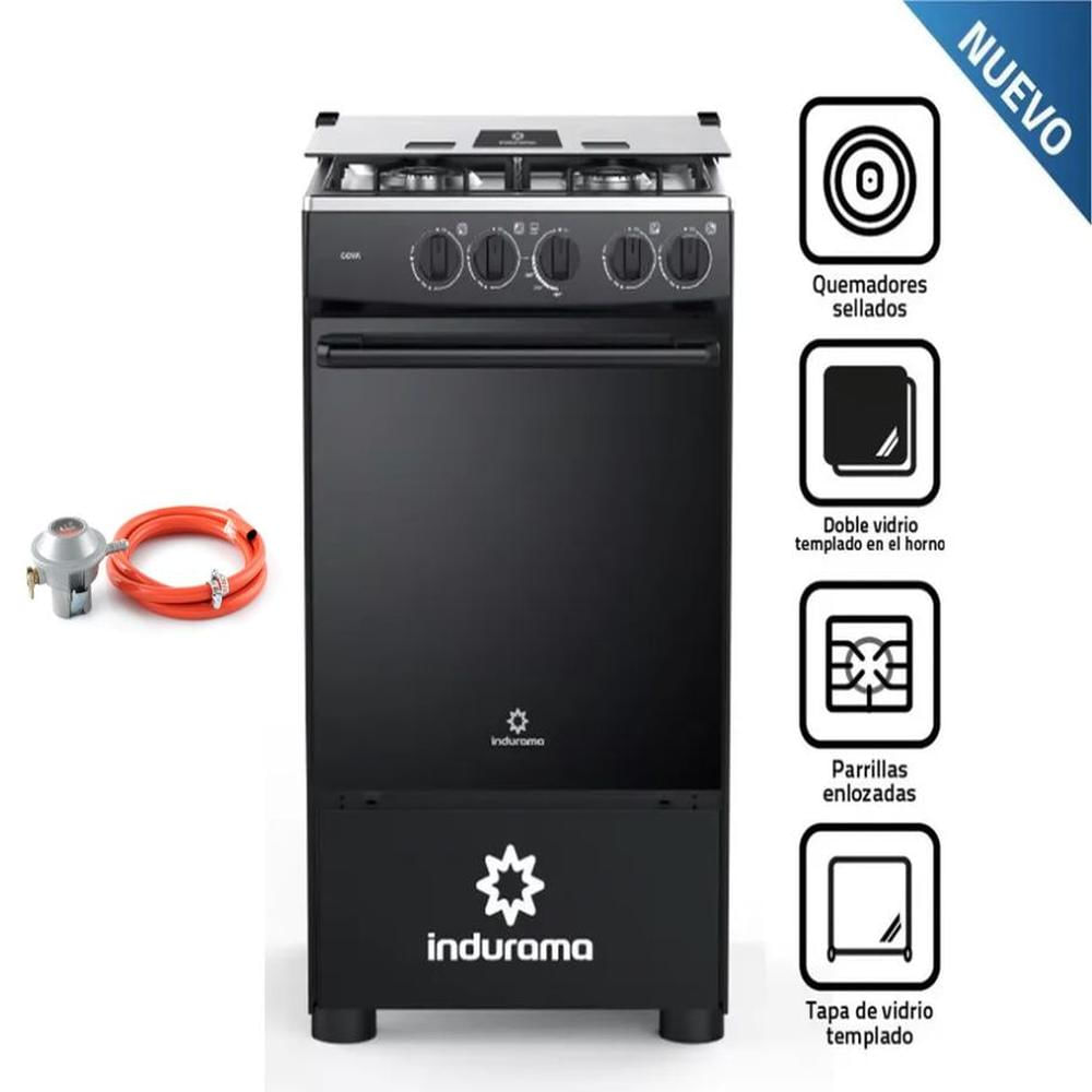 COCINA A GAS GLP INDURAMA 4 HORNILLAS GOYA NEGRO MAS Válvula para Gas