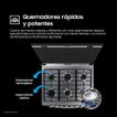 | Características | Cocción más rápida y energéticamente eficiente. Amplia zona de cocción. Rápida detección de fugas de gas y protección. Quemador rápido. Sistema de doble bloqueo de seguridad. Diseño elegante y robusto. Plancha de hierro fundido. Previene accidentes por vuelcos del horno con su tecnología antivuelcos. Rack deslizante automático. Interior fácil de limpiar y resistente ante rayaduras. |
