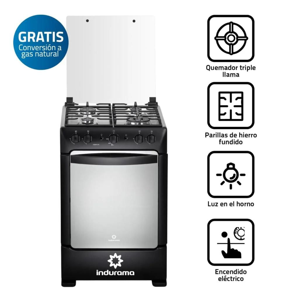 COCINA INDURAMA POMPEYA 4 HORNILLAS NEGRA - COCINA POMPEYA INDURAMA 4 HORNILLAS NEGRA