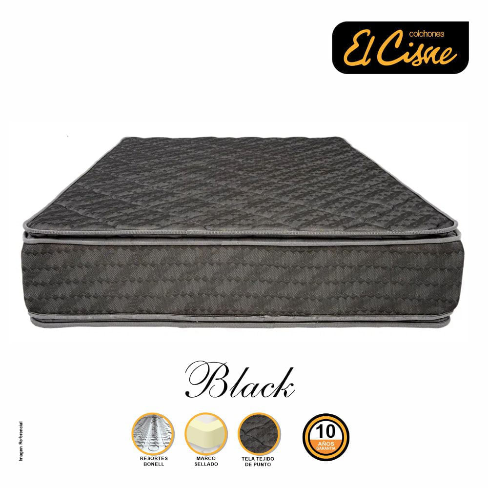Colchón EL CISNE Black Resorte King + 2 Almohadas + Protector