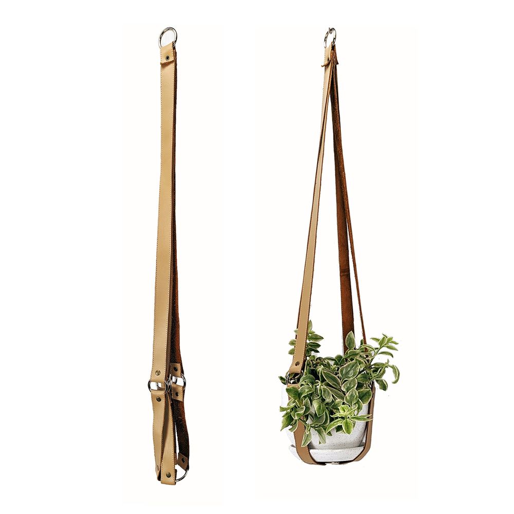 Colgador para plantas y macetas con Aros Un Cuarto Verde de cuero 81cm