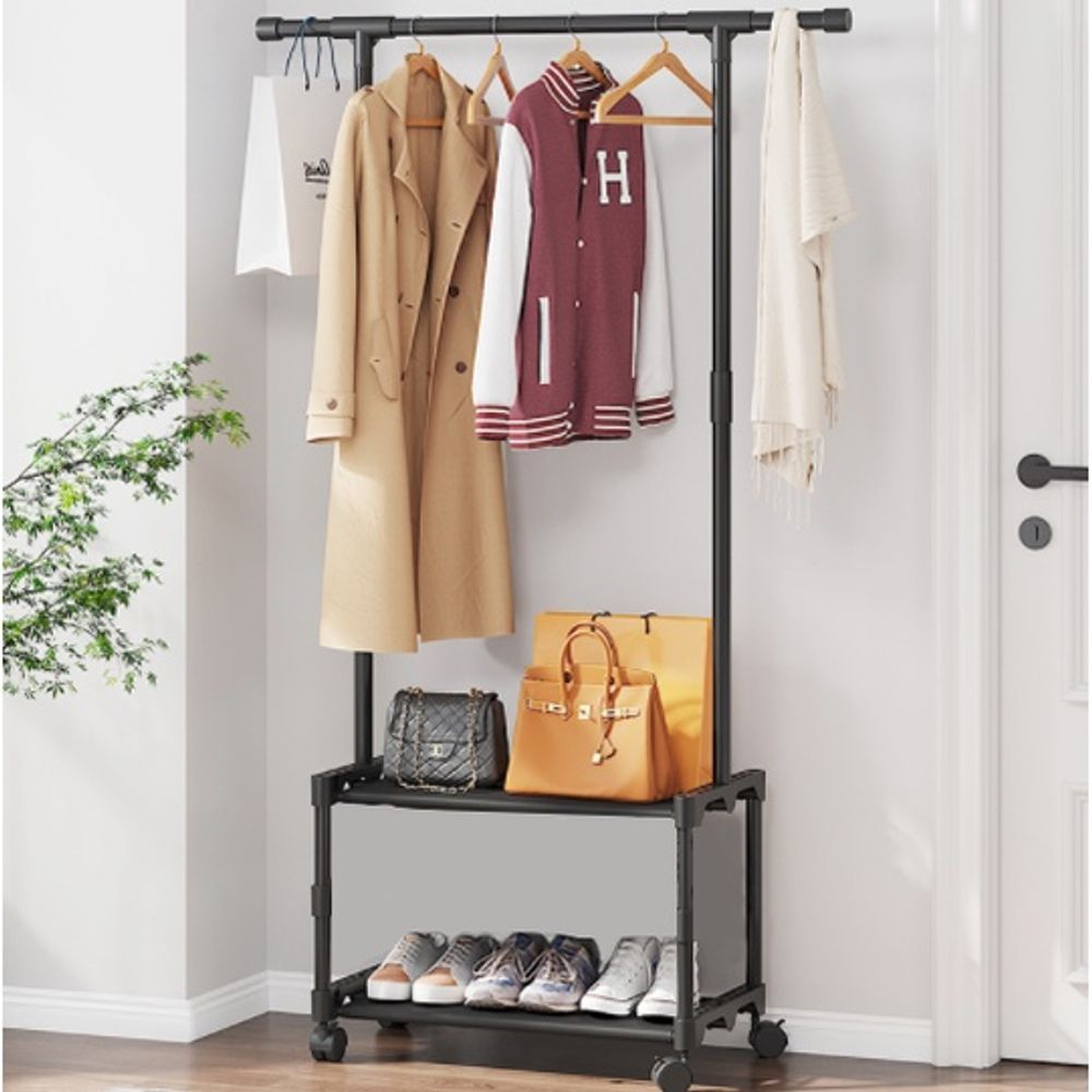 Colgador Perchero de Ropa con Zapatera de 2 Niveles con Ruedas