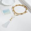 Collar Bohemio Geraldine de Cuentas de Madera con Borla Crema Talla única