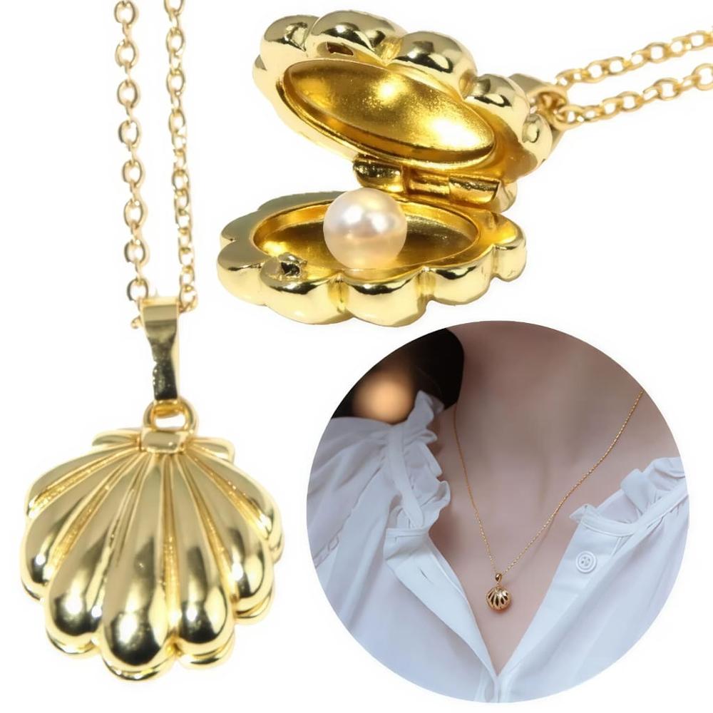 Collar Concha De Mar Perla Dorado Diseño Exclusivo