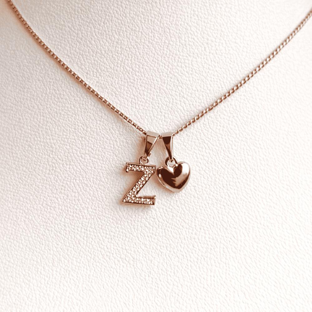 COLLAR LETRA Z Y CORAZON BAÑADO EN ORO ROSA 18 KILATES