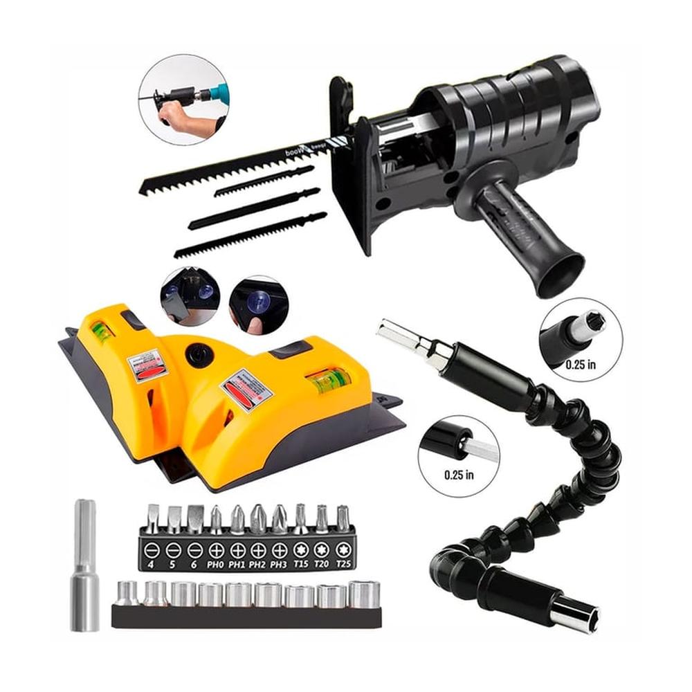 Combo Adaptadores Taladro A Caladora Escuadra Nivel Láser